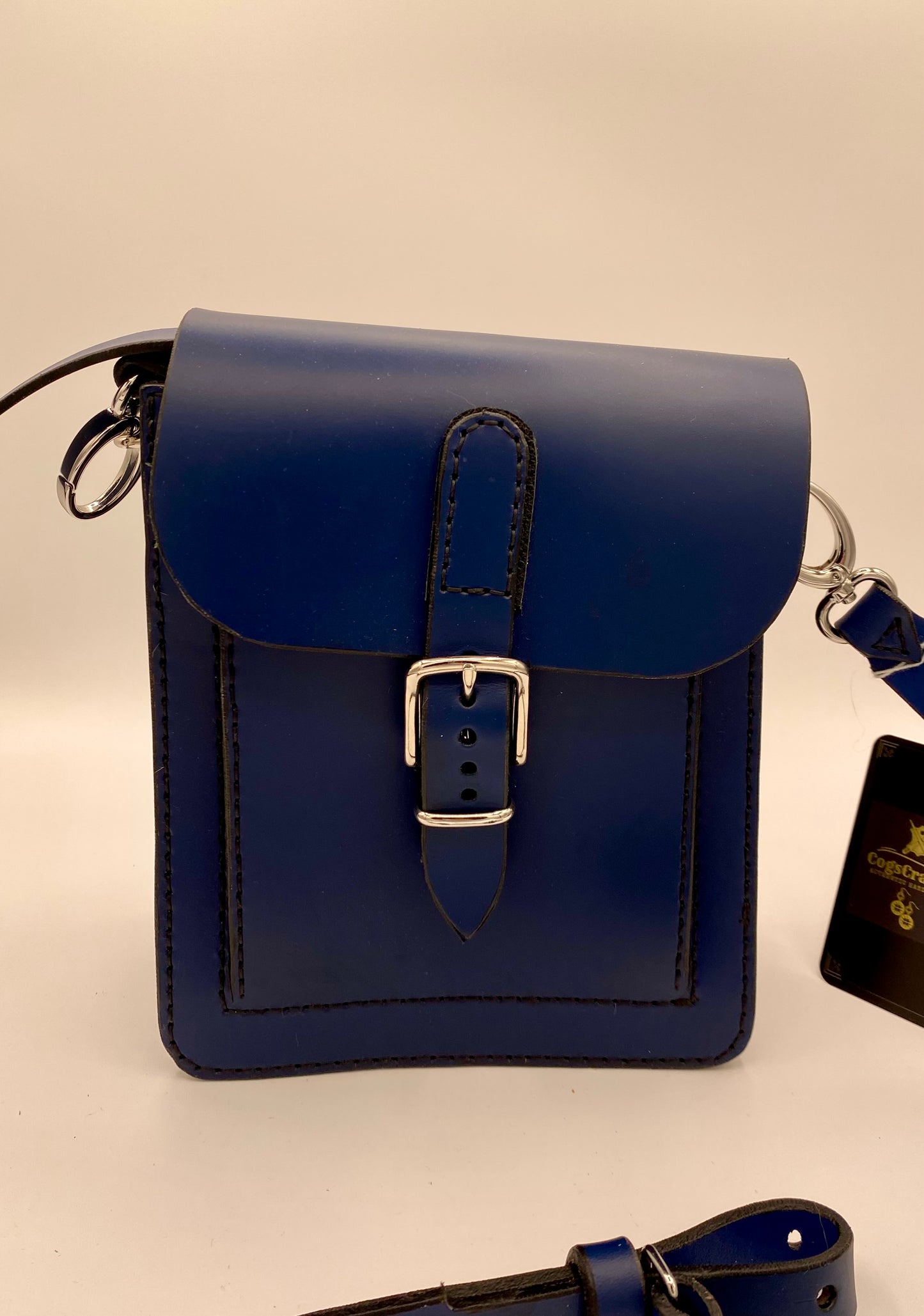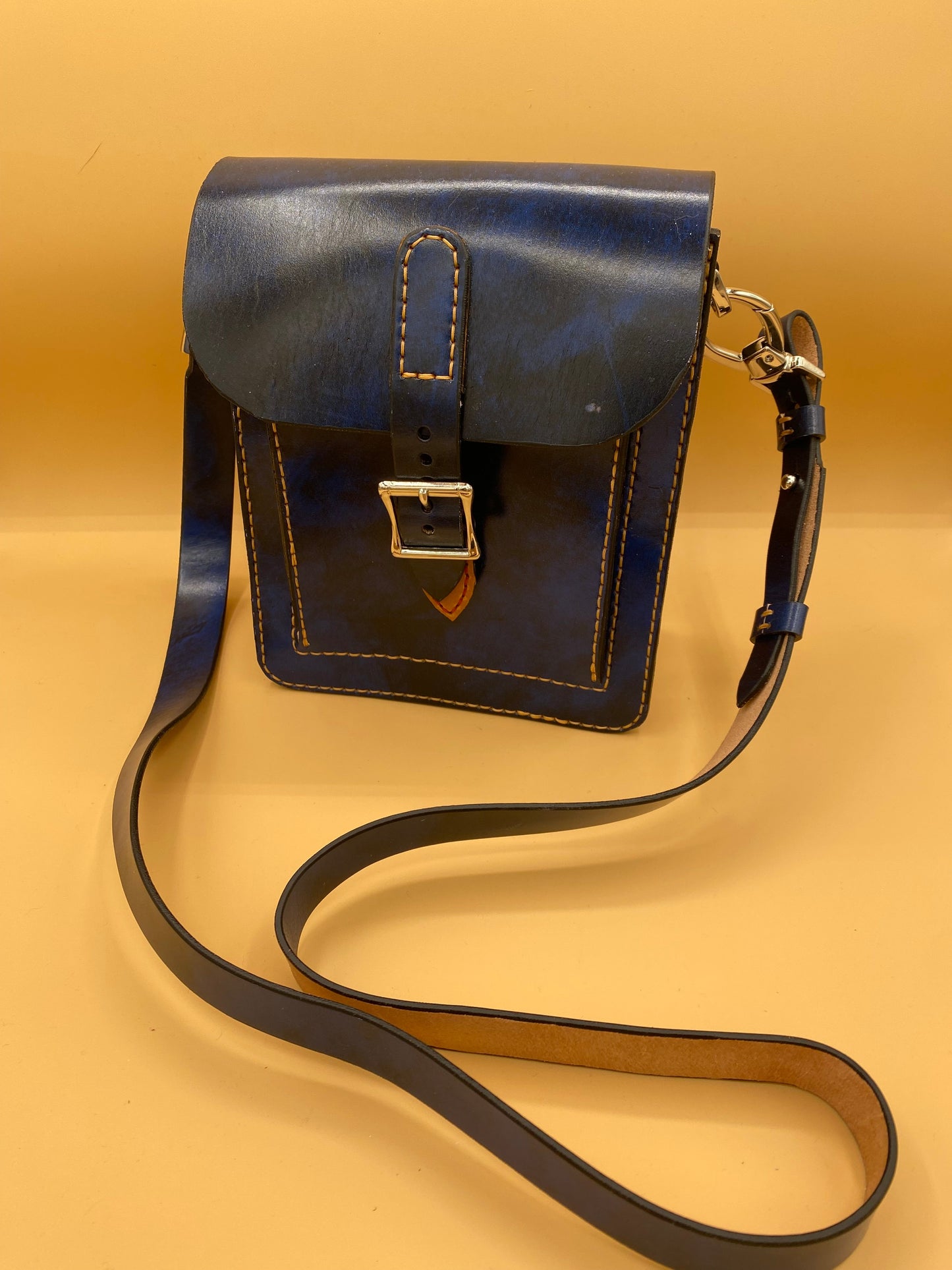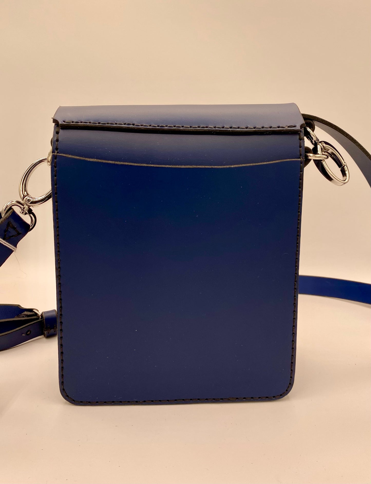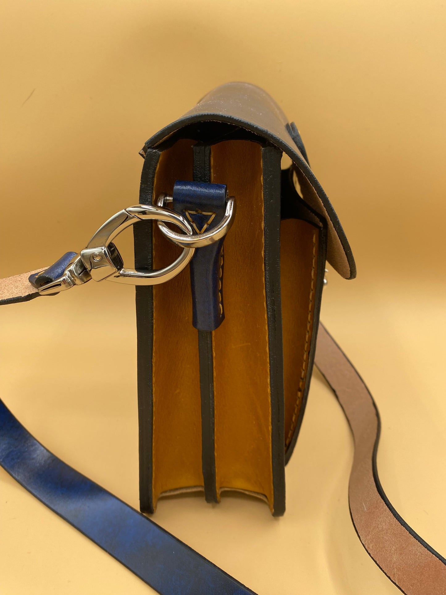 Penny is a fun bag with two compartments and a great cross-body strap. It's a nice size for your daily carry, holding all the essentials! Shown in Chrome Tan Navy Burl. Please allow 6-8 weeks for your custom order.