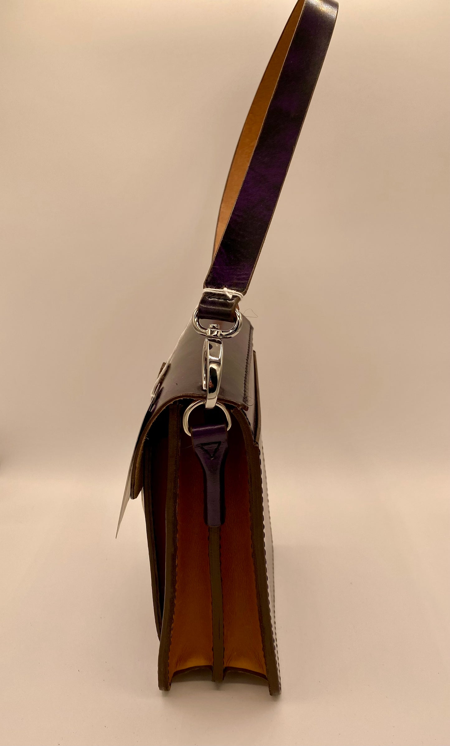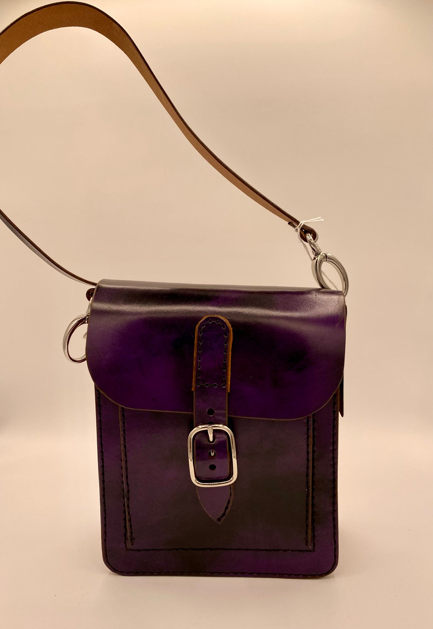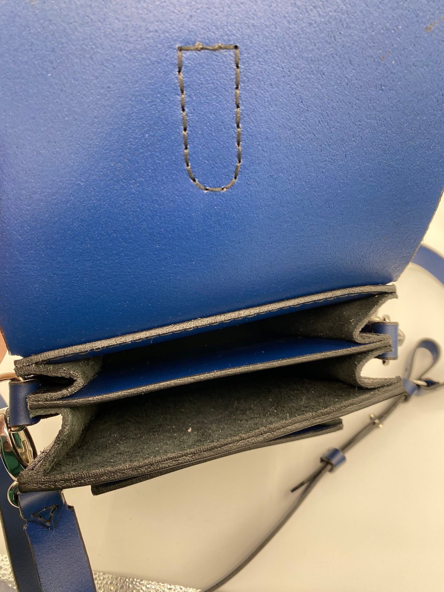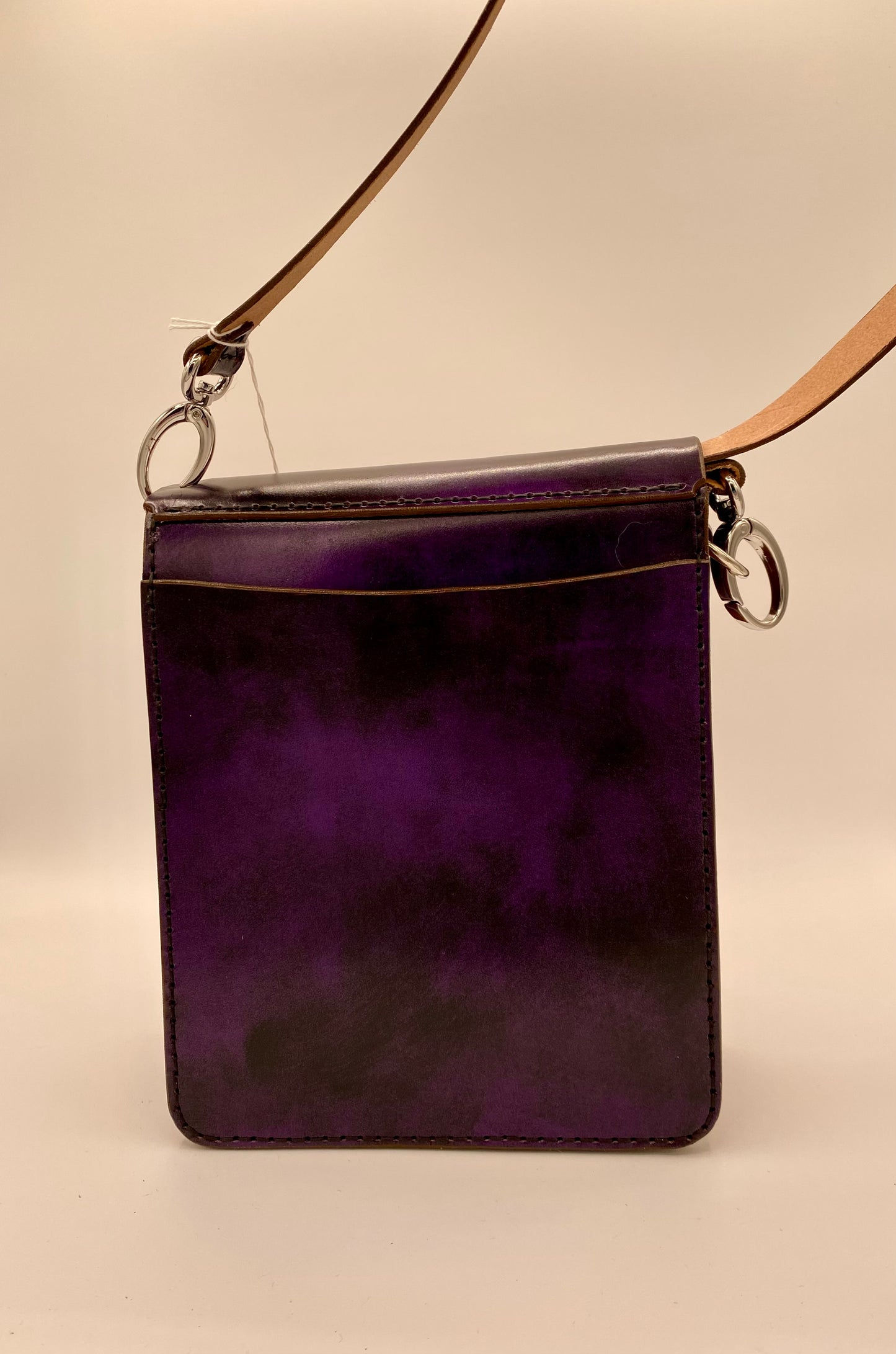 Penny is a fun bag with two compartments and a great cross-body strap. It's a nice size for your daily carry, holding all the essentials! Shown in Chrome Tan Navy Burl. Please allow 6-8 weeks for your custom order.